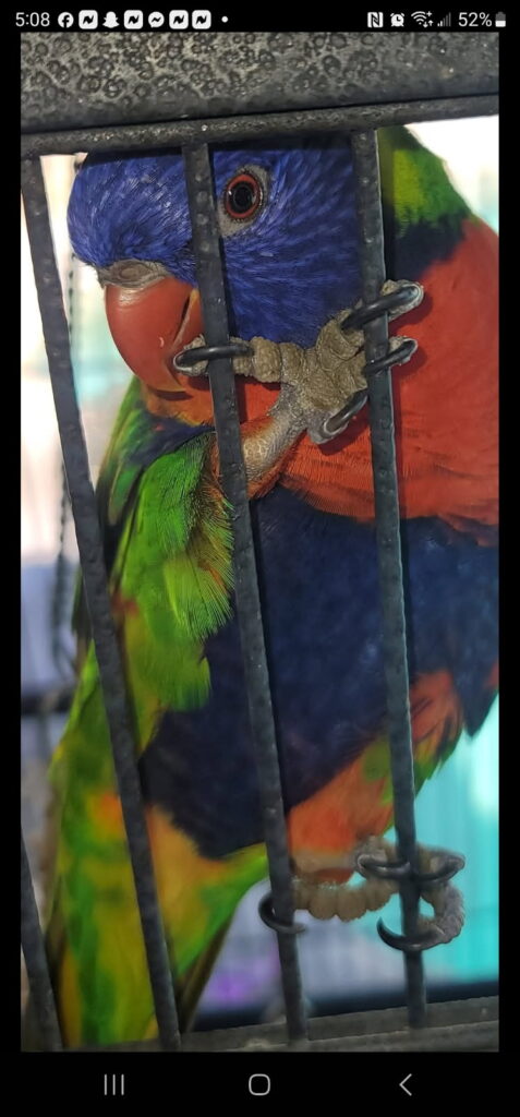 Kevin – A beautiful Rainbow Lorikeet. Was neglected so we gave him a forever home. Great personality