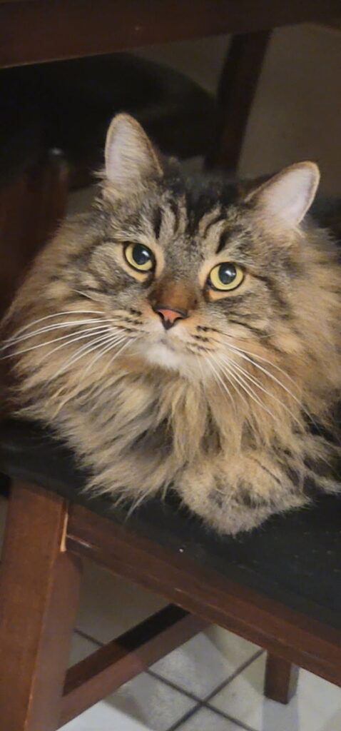 Scatback – Showed up one day in our barn tack room. Given a forever home, He became the best barn/garage/mouser cat ever and very friendly too. the name just seem to fit.
